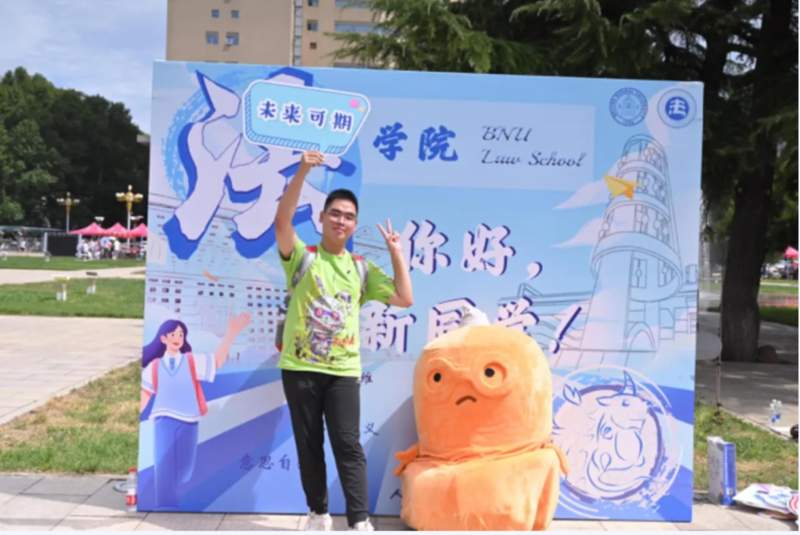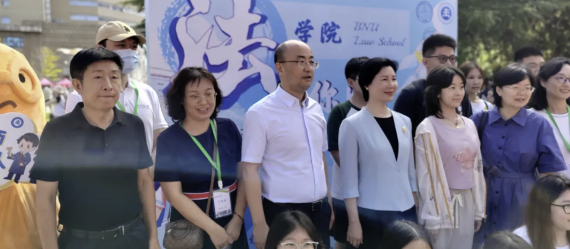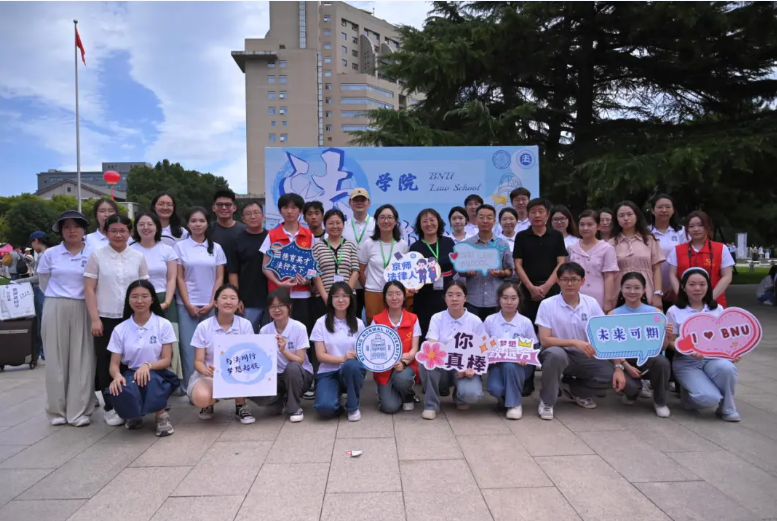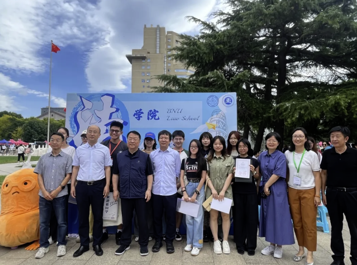 In the morning, Cheng Jianping, Secretary of the Party Committee of Beijing Normal University, and Yu Jihong, President of Beijing Normal University, came to the new student registration site of the Law School to learn about the registration of new students in the Law School, expressed cordial greetings to the teachers and students who participated in the new student welcome event, and took photos with the teachers and students at the Law School.