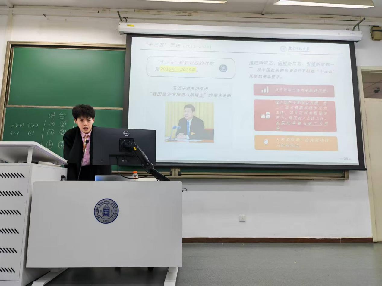 随后,马克思主义学院2025级硕士研究生、宣讲团讲师陈宇带来了第二场报告。他从一份2005年的中外探月计划对比材料切入,生动讲述了中国如何通过“绕、落、回”“三步走”战略,一步一个脚印将探月蓝图变为现实,而同期其他国家的规划大多沦为“空谈”。通过这一鲜明对比,他深刻阐释了“五年规划”这一中国特色社会主义制度所蕴含的“长期主义”优势,并沿着从“一五”计划到“十五五”规划的历史轨迹,展现了中国共产党带领全国人民科学规划、接续奋斗所创造的伟大奇迹,揭示了“规划治国”背后的中国智慧、中国力量。