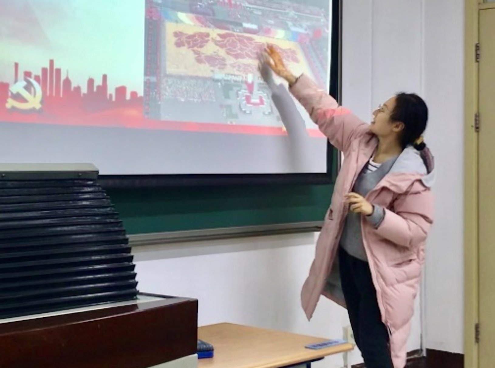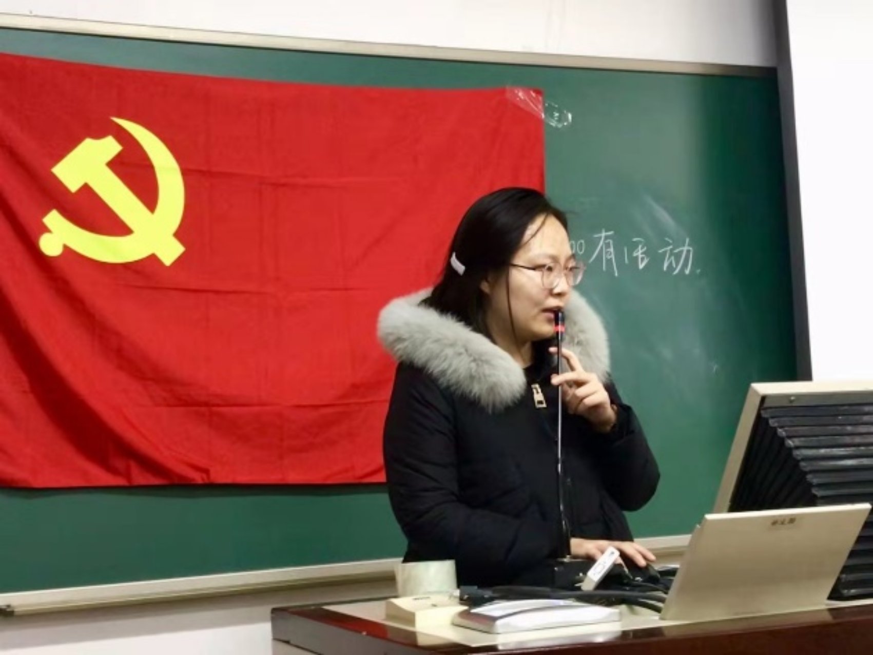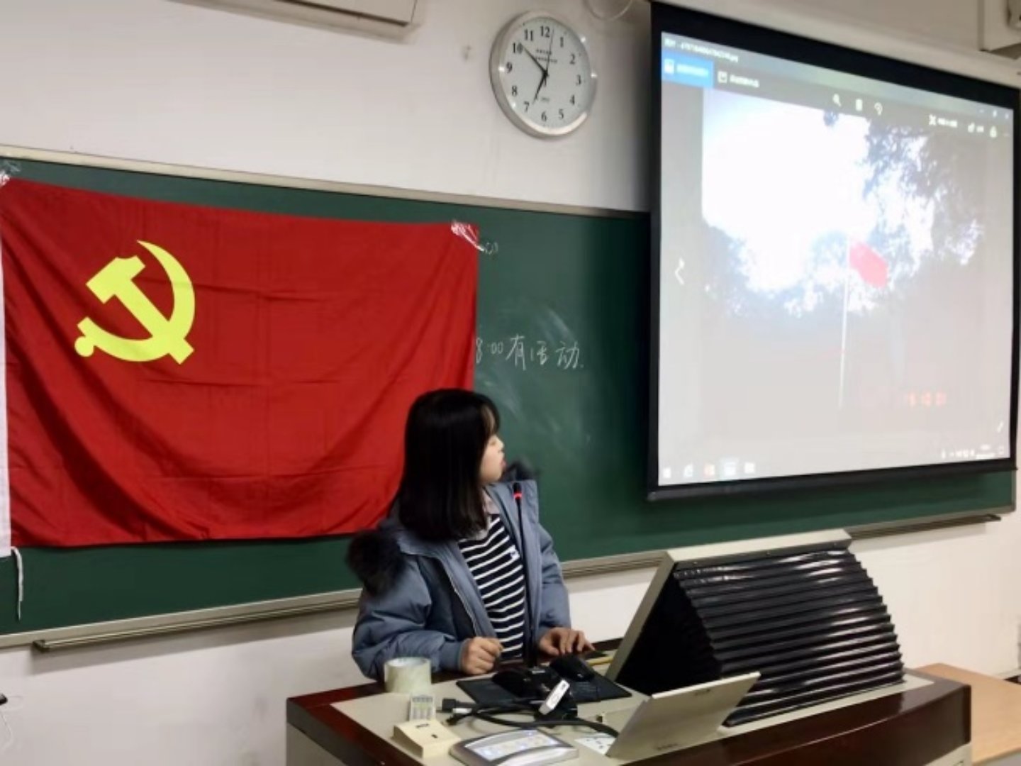 第二位讲述者是王奕琛,他为同学们讲述了安徽省凤阳县小岗村党委第一书记沈浩的感人事迹。作为最基层的干部,沈浩心系百姓,鞠躬尽瘁、尽心尽力,被当地百姓不断要求连任,却最终牺牲在工作岗位上。像沈浩一样的基层党员干部在中国还有千千万,正是他们的不断努力付出,才有了如今七十周年的繁华盛景。