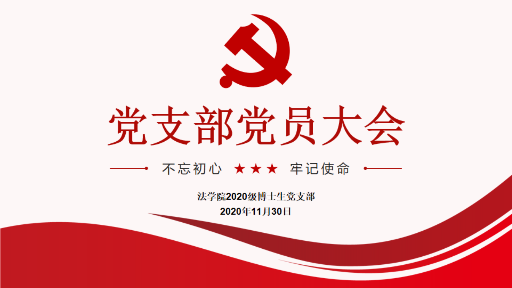 为学习党的十九届五中全会精神和习近平法治思想、讨论孟达华同学转为中共正式党员等相关事宜,按照学校和学院的党建工作部署,欧洲杯 2020级博士生党支部于2020年11月30日18:30在教四楼109教室召开了支部党员大会。本支部的正式党员和积极分子22名同学准时参会,支部书记詹周达同学主持会议。
