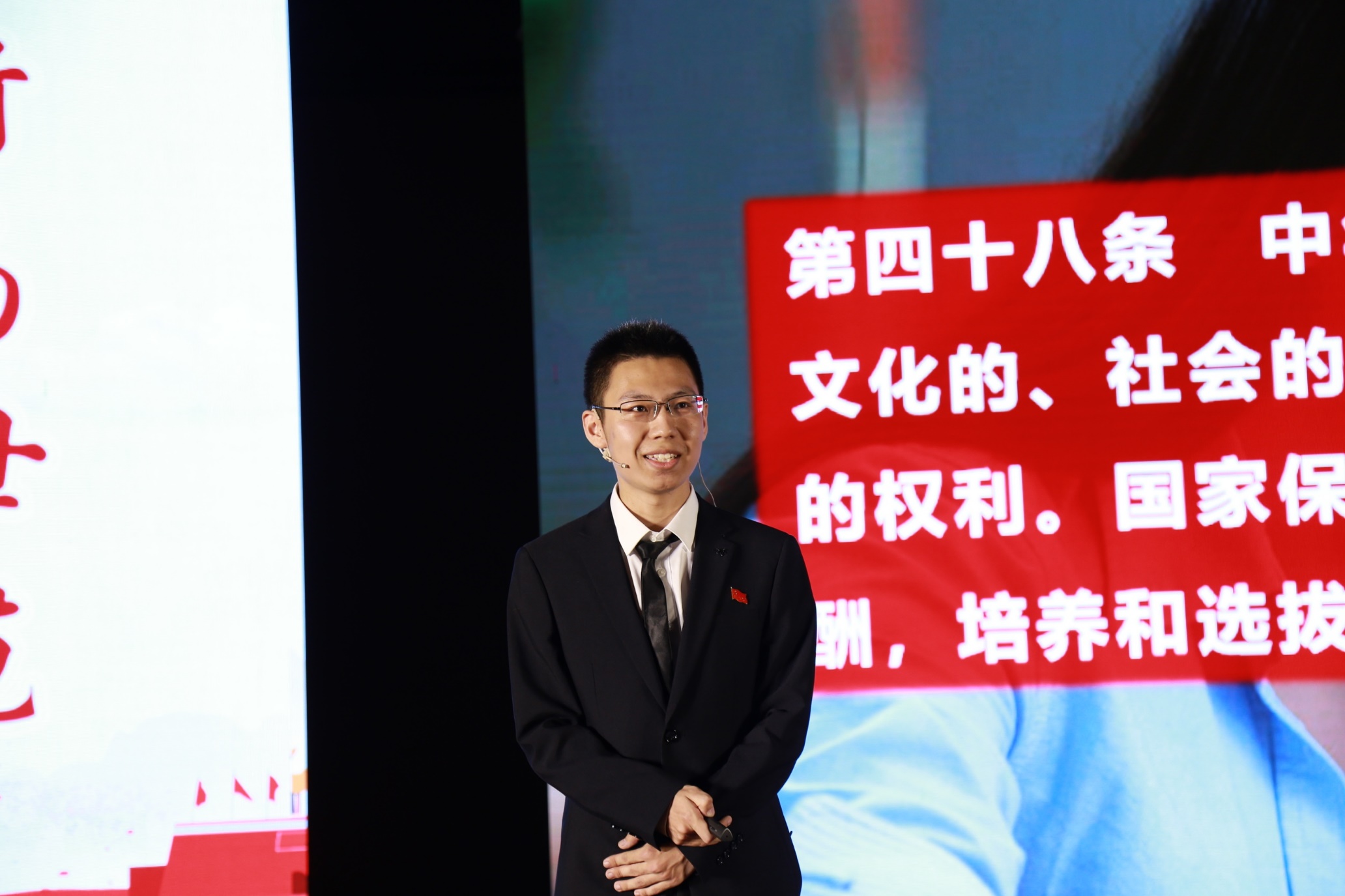 在决赛中,我院选手李勇同学以“宪法与人的一生”为题,为观众呈现一堂极其精彩的党课。首先,他以自身两年前“宪法日”外场中的经历作为引入,启发观众对于宪法重要性的思考,接下来他以每个人的一生为线索,循序渐进地阐释了宪法的相关条文与我们人生中求学、就业、婚姻、退休等重大事件的关联,告诉同学们:宪法看起来离我们很远,实际却与我们的一生都紧密相连。最后他引用习近平总书记关于宪法重要性的阐释,鼓舞同学们了解宪法、尊重宪法、拥护宪法、信仰宪法,从你我做起,实现依宪治国的宏伟目标。
