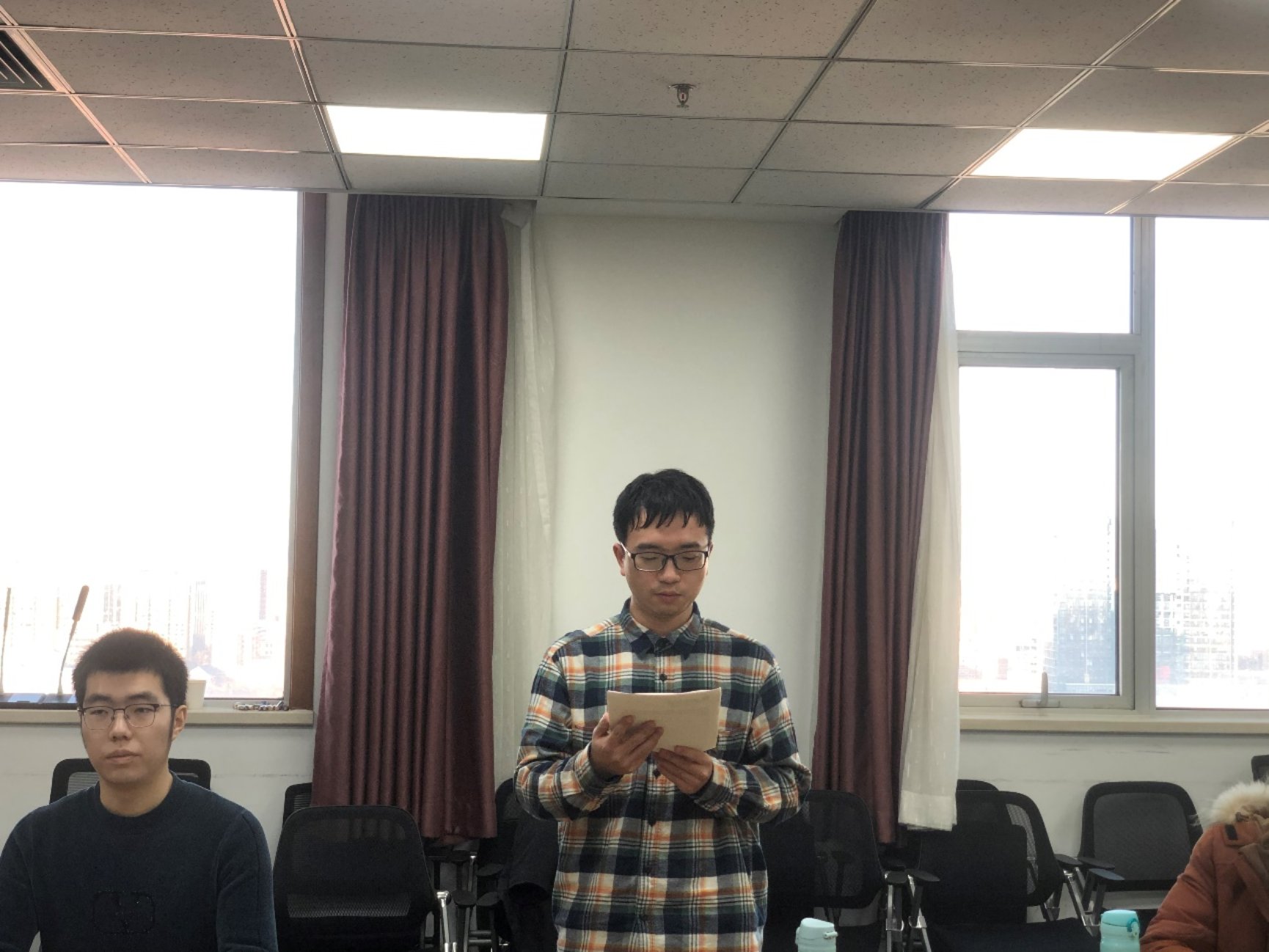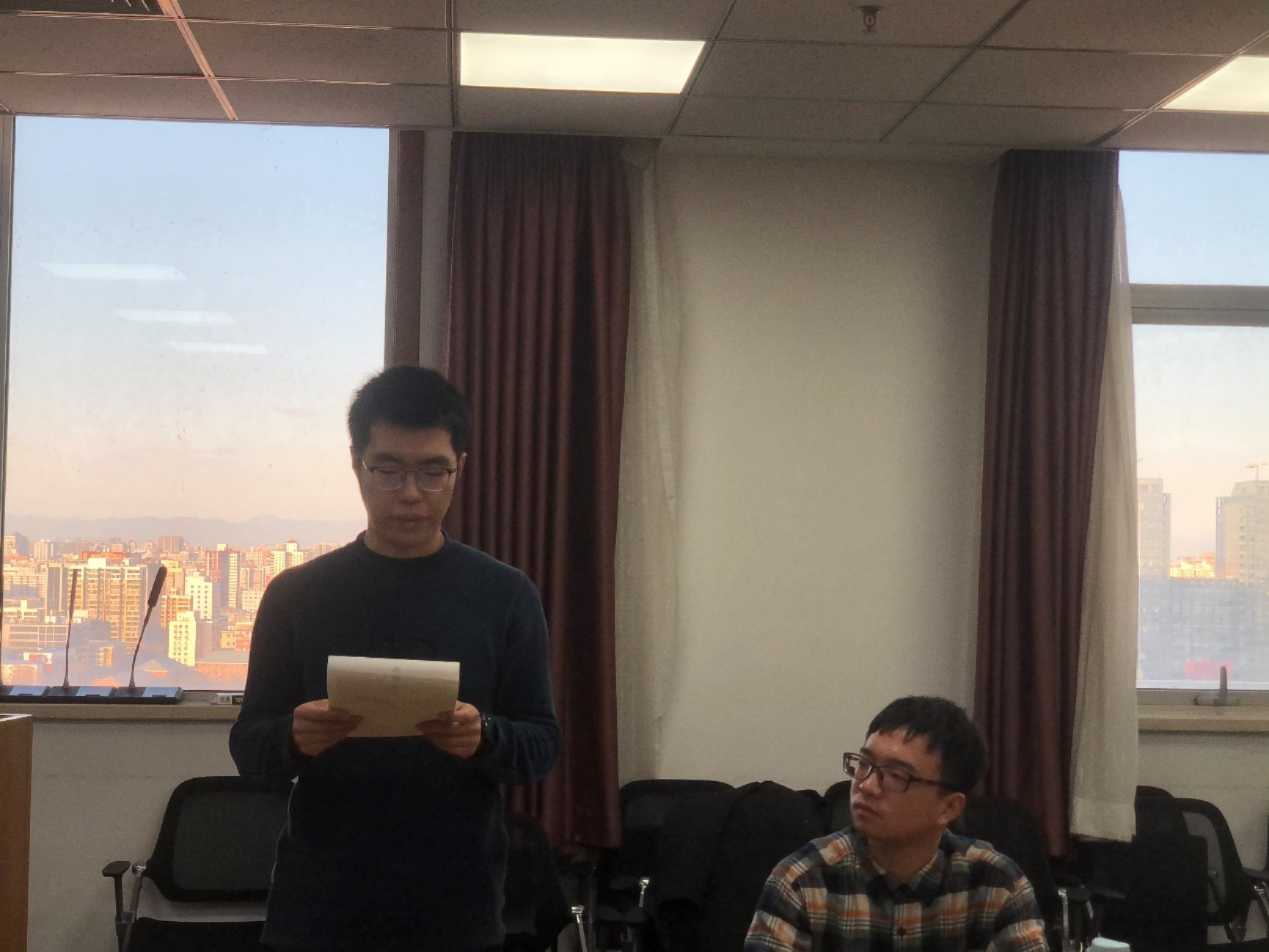 会议伊始,全体党员庄严肃立,同志们用激昂的歌声合唱《国际歌》,在表达对革命事业绝对忠诚的同时,也展示出对中国共产党的坚定信念。合唱过后,党支书李凌智同志表示,此次会议本次大会应到党员16名,其中有表决权的正式党员14名,预备党员2名,实到党员12名,因事请假2人,有表决权的到会人数超过应到会有表决权人数的半数,符合召开支部党员大会的条件。