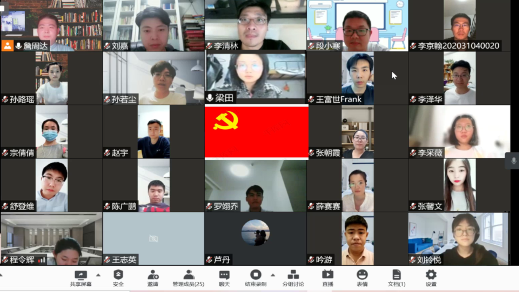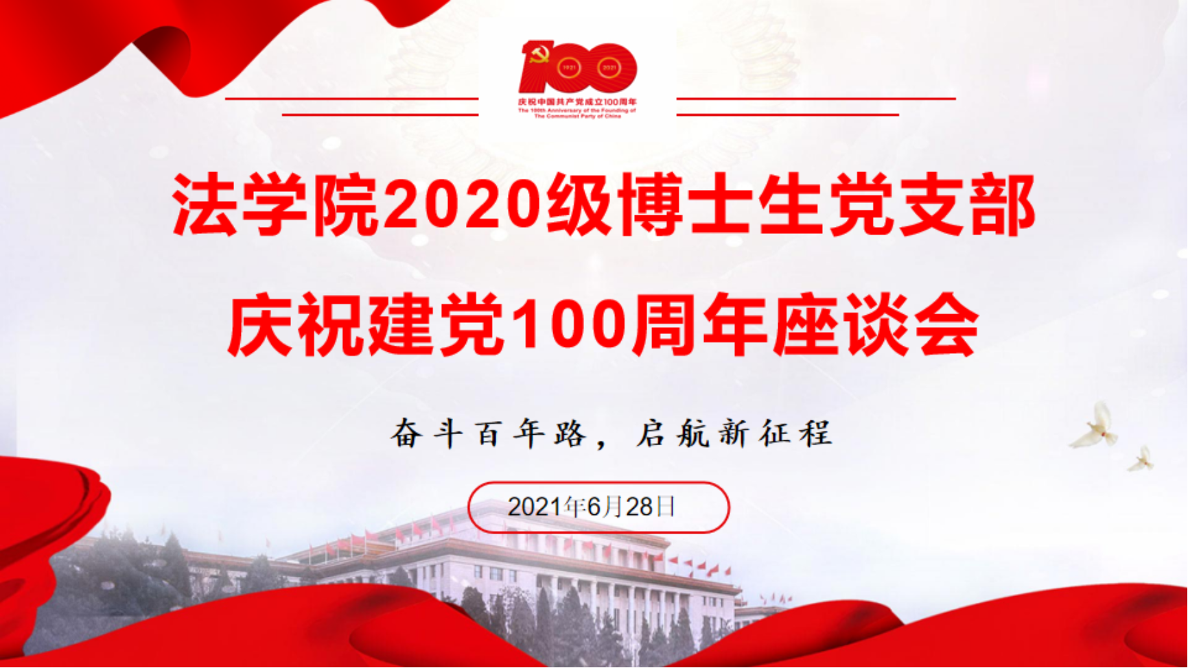 在建党百年华诞来临之际,欧洲杯 2020级博士生党支部在2021年6月28日于线上召开庆祝中国共产党成立100周年座谈会,同时也作为2021年上半年党史学习教育工作的阶段性总结会议。会上专门安排了党史学习教育、中国共产党领导法治中国建设主题党课、支部成员间主题交流和支部其他工作等内容,让同志们在喜迎建党百周年庆之际应时而学,临时抒怀,并为2021年度下半年党史学习教育工作的开展开启序幕。支部有24名成员参加此次会议,会议由支部书记詹周达同志主持。