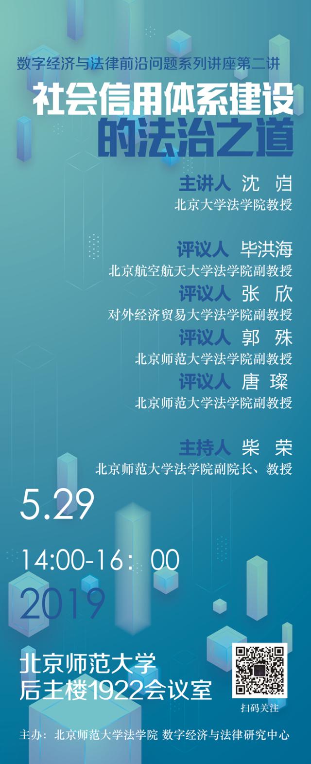 【05.29】数字经济与法律前沿问题系列讲座第二讲--社会信用体系建设的法治之道/主讲人:沈岿