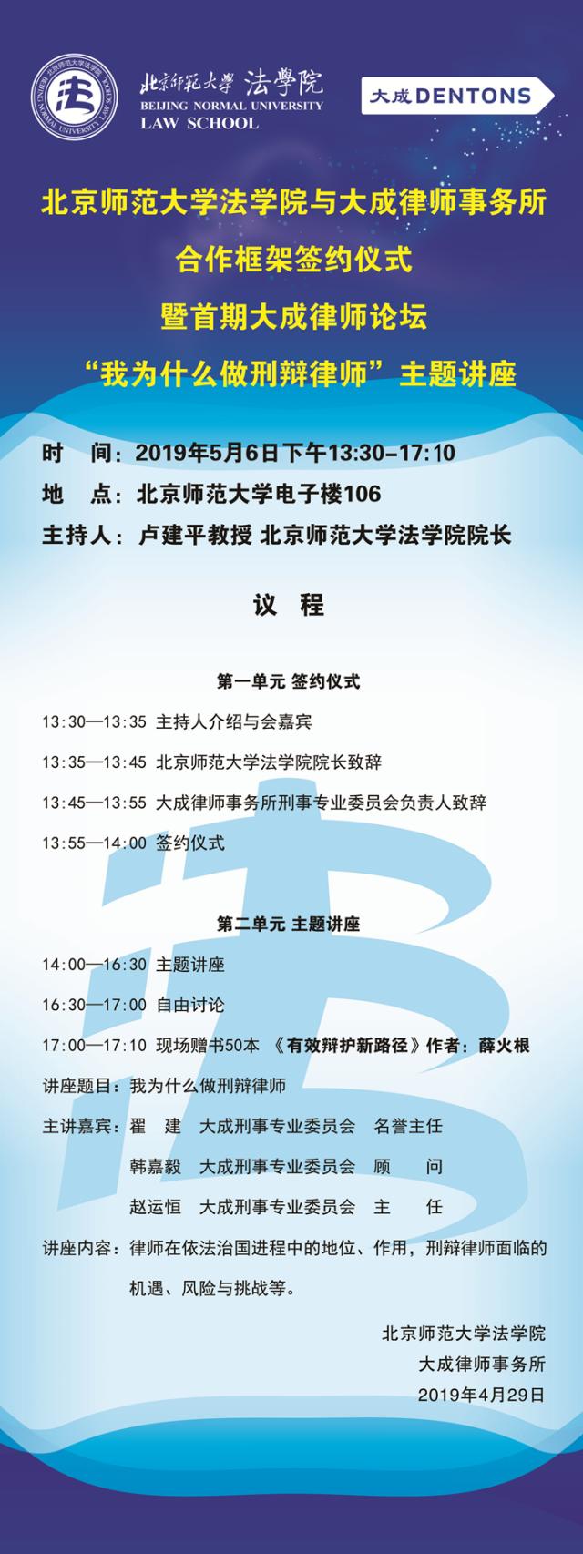 【05.06】北师大欧洲杯 与大成律师事务所合作框架签约仪式暨首期大成律师论坛“我为什么做刑辩律师”主题讲座