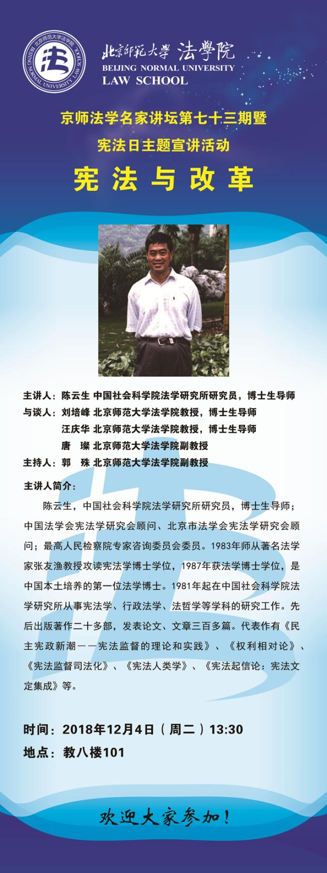 【12.04】京师法学名家讲坛第七十三期暨宪法日主题宣讲活动---宪法与改革/主讲人:陈云生