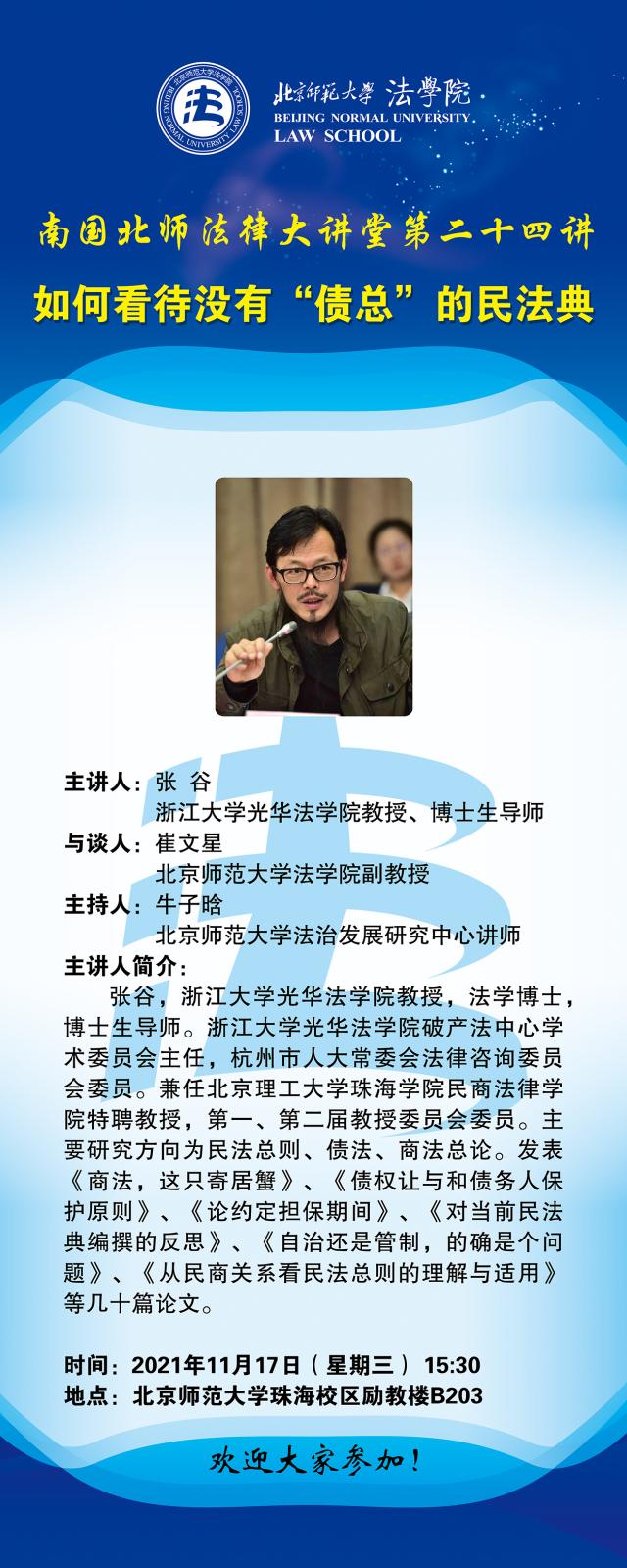 【11.17】南国北师法律大讲堂第二十四讲——如何看待没有“债总”的民法典/主讲人:张谷
