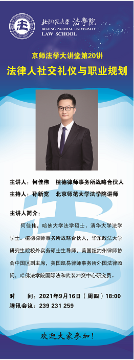 【09.16】京师法学大讲堂第20讲——法律人社交礼仪与职业规划/主讲人:何佳伟