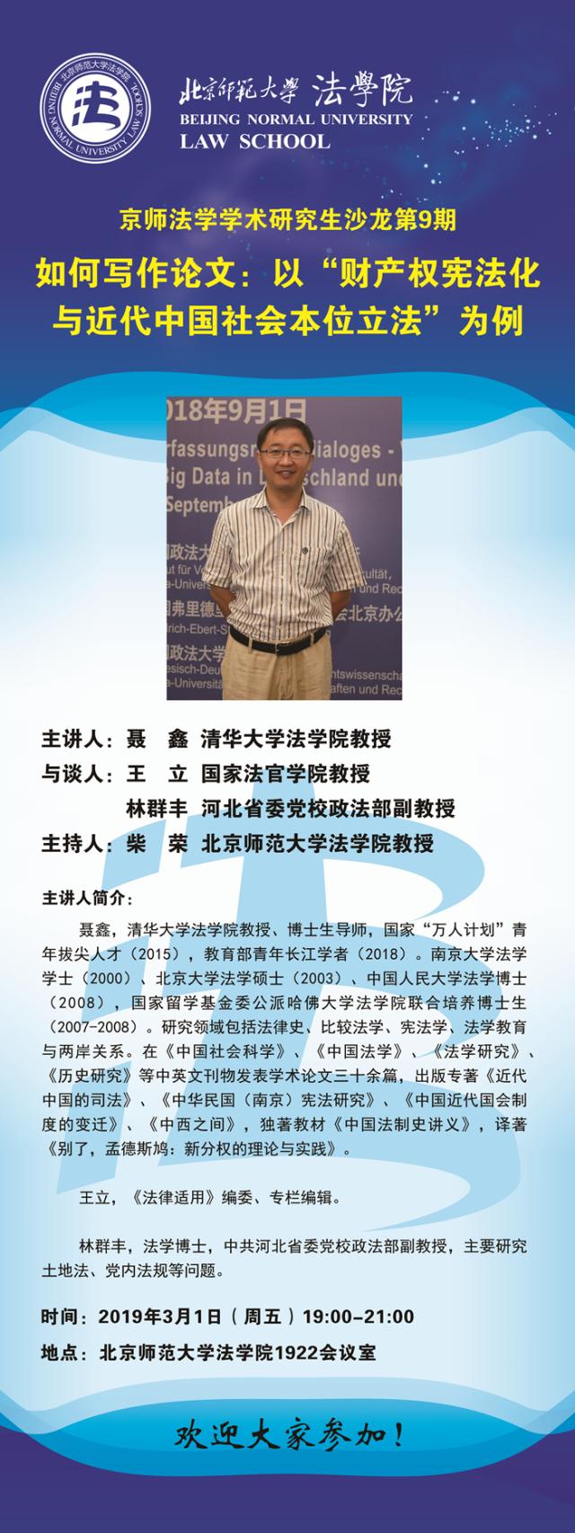 【03.01】京师法学学术研究生沙龙第9期--如何写作论文:以“财产权宪法化与近代中国社会本位立法”为例/主讲人:聂鑫