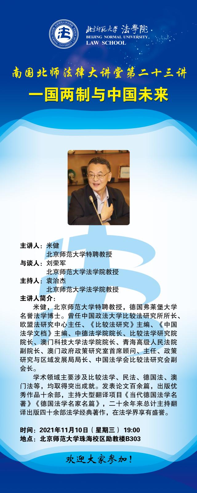 【11.10】南国北师法律大讲堂第二十三讲——一国两制与中国未来/主讲人:米健
