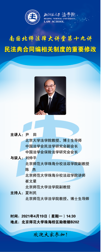 【4.19】南国北师法律大讲堂第十九讲——民法典合同编相关制度的重要修改/主讲人:尹田