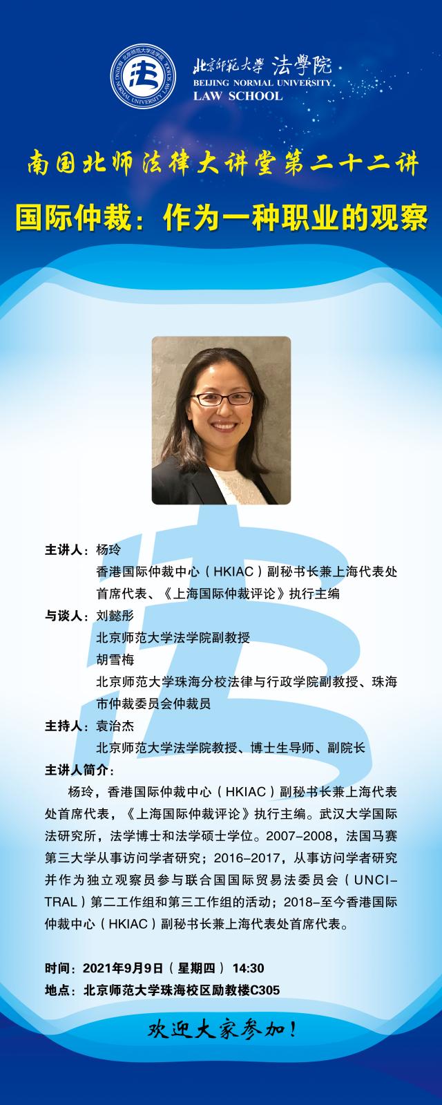 【09.09】南国北师法律大讲堂第二十二讲——国际仲裁:作为一种职业的观察/主讲人:杨玲
