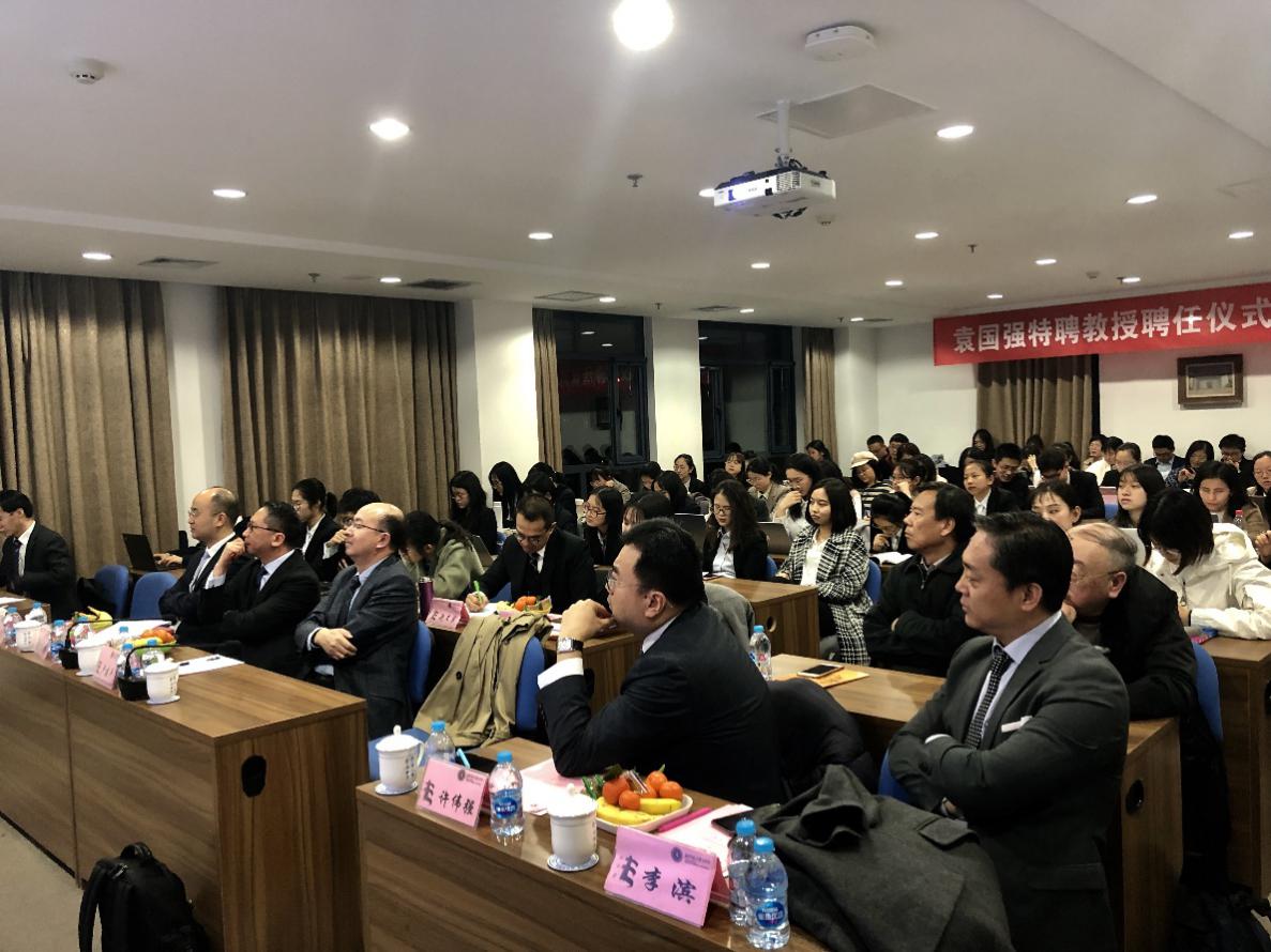 稍作休息后,由袁国强特聘教授作了题为“Technology and the Law: A Few Personal Thoughts”的主题讲座。袁国强特聘教授首先简要讲述了科技影响人类生活的时代大背景,以及新时期法律人面对新的科技发展形势的责任与担当。之后,袁国强特聘教授从虚拟货币、人工智能、数据安全等三个科技前沿领域作为切入点,剖析了在科技迅猛发展的形势下,相对滞后的现有法律体系所面临的困境与挑战。面对这些问题,他指出在保障科技创新发展的前提下通过法律对科技进行规制的重要性,强调了国际合作在处理科技与法律的关系中的关键作用。讲座结束后,汪庆华教授进行了精彩的评议,着重讲述了各大数据平台融入公共管理以及私人生活的现状,对法律所面临的巨大挑战做了全面深入的分析。