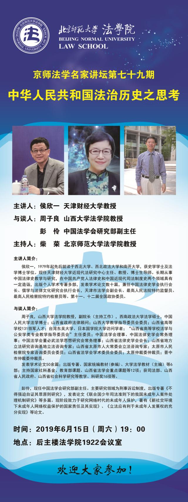 【06.15】京师法学名家讲坛第七十九期--中华人民共和国法治历史之思考/主讲人:侯欣一