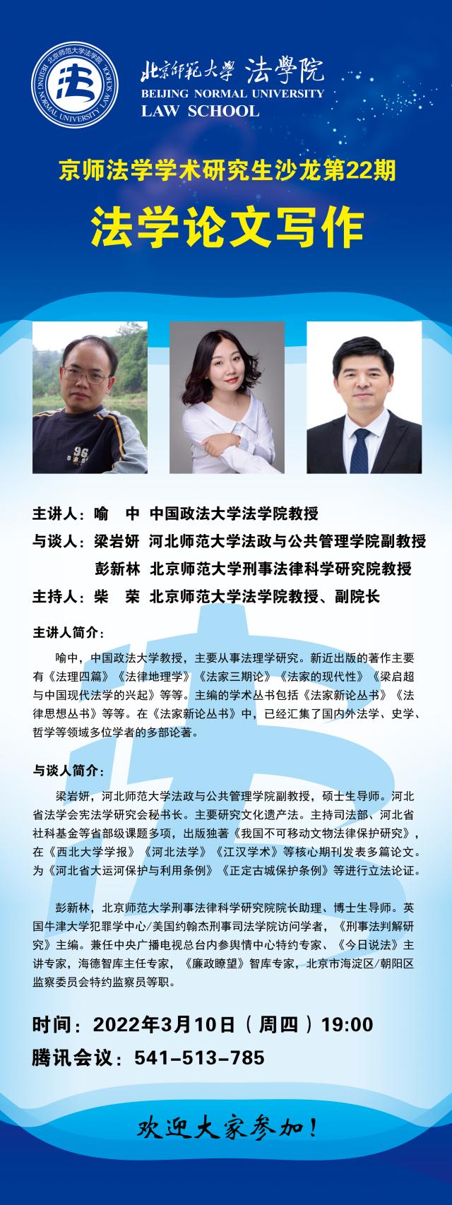 【03.10】京师法学学术研究生沙龙第22期:法学论文写作/主讲人:喻中