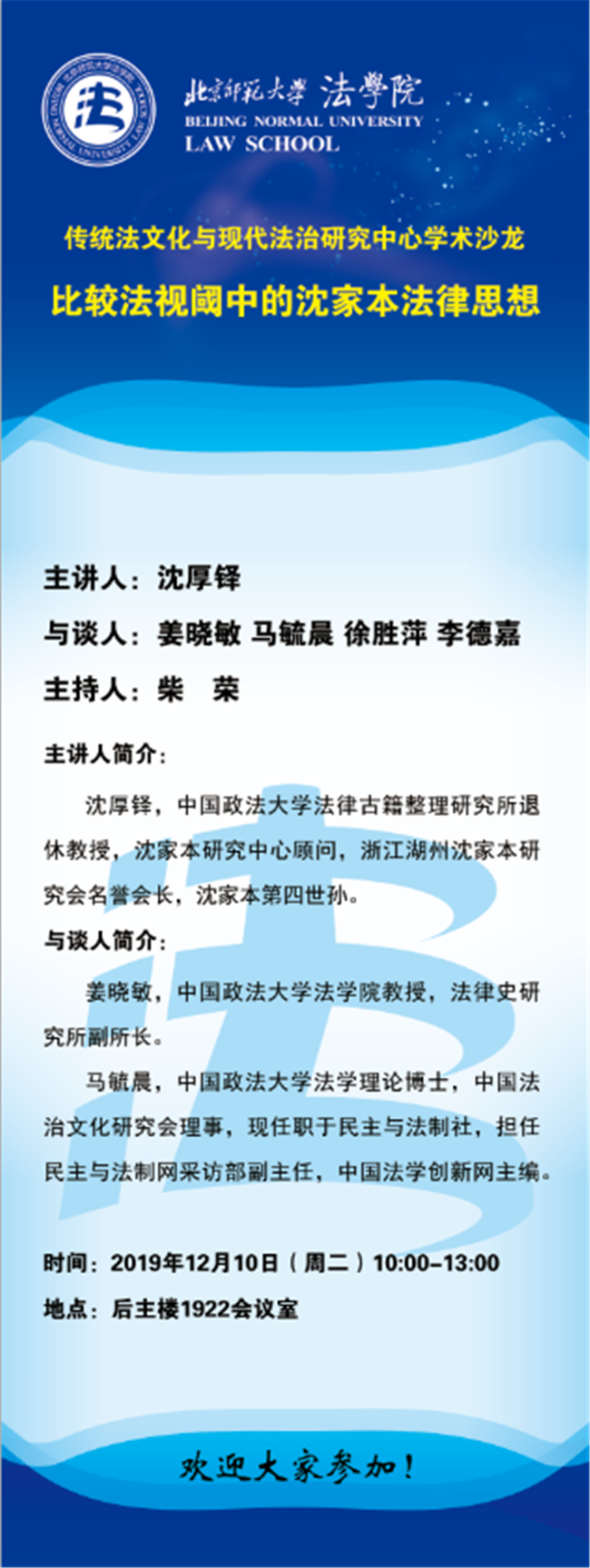【12.10】比较法视阈中的沈家本法律思想/主讲人:沈厚铎