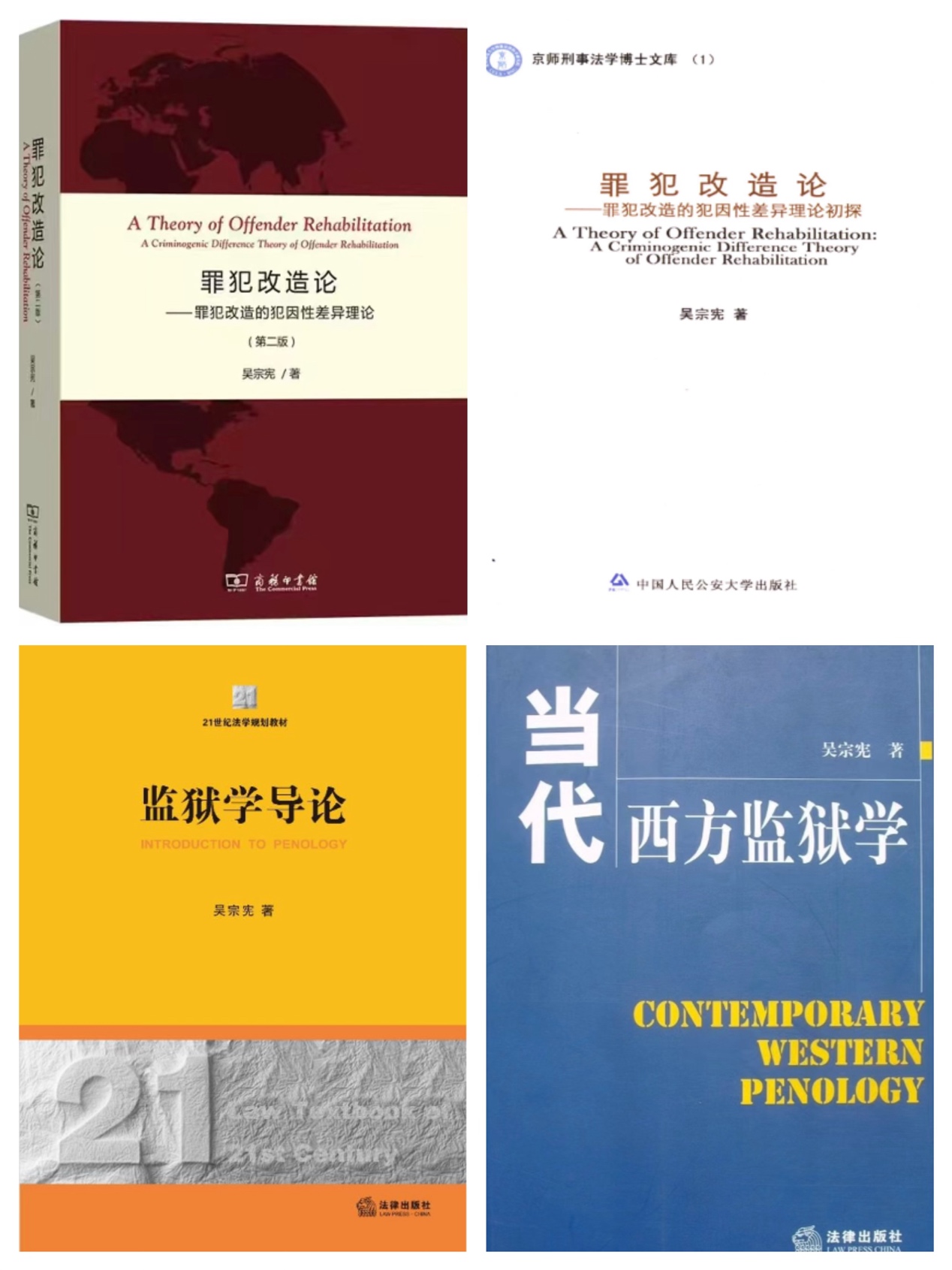 本书中收录的关于吴宗宪教授经历和事功的“监狱学研究回顾与思考”长文,较为详细地介绍了上述方面的很多信息,通过丰富多彩的内容、翔实可靠的资料和细致详尽的论述,留下了吴宗宪教授在这个领域的印痕。